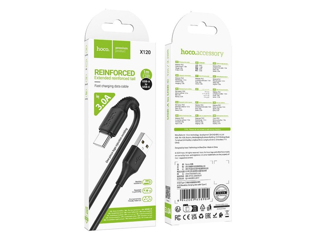 Kabel Hoco X120 s konektorem USB-A na USB-C. Podporuje nabíjení a přenos dat.