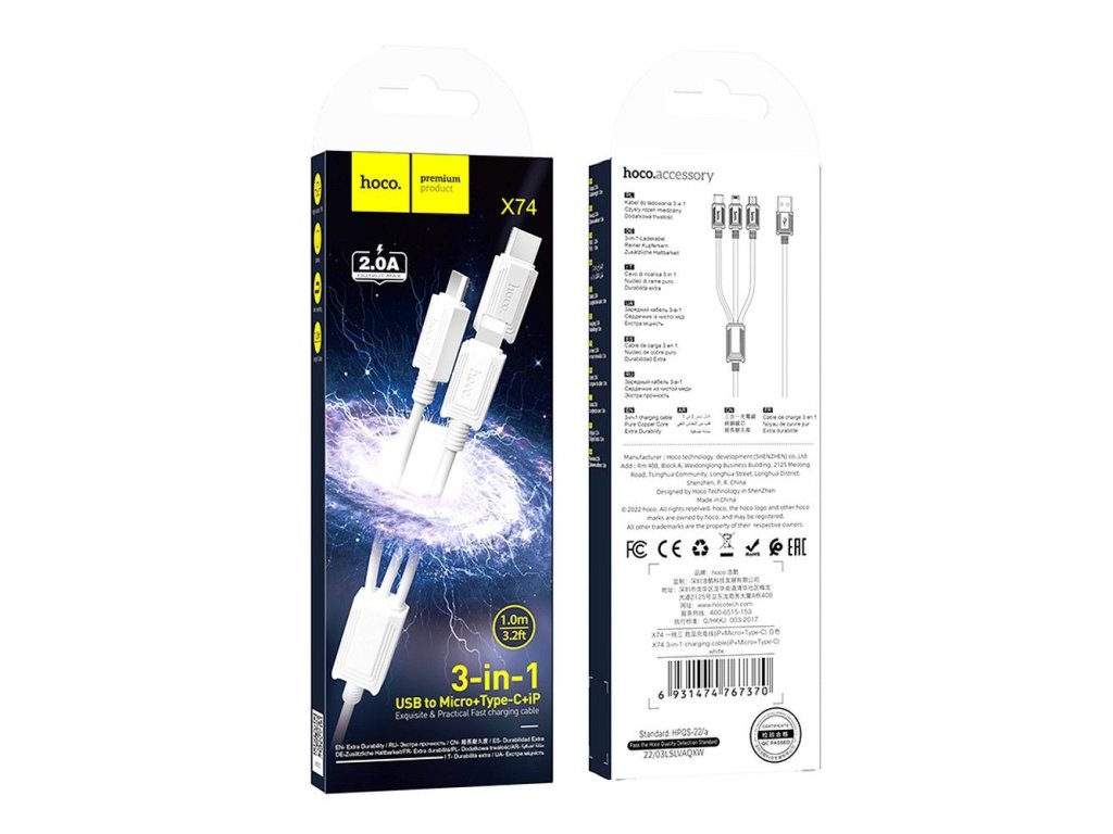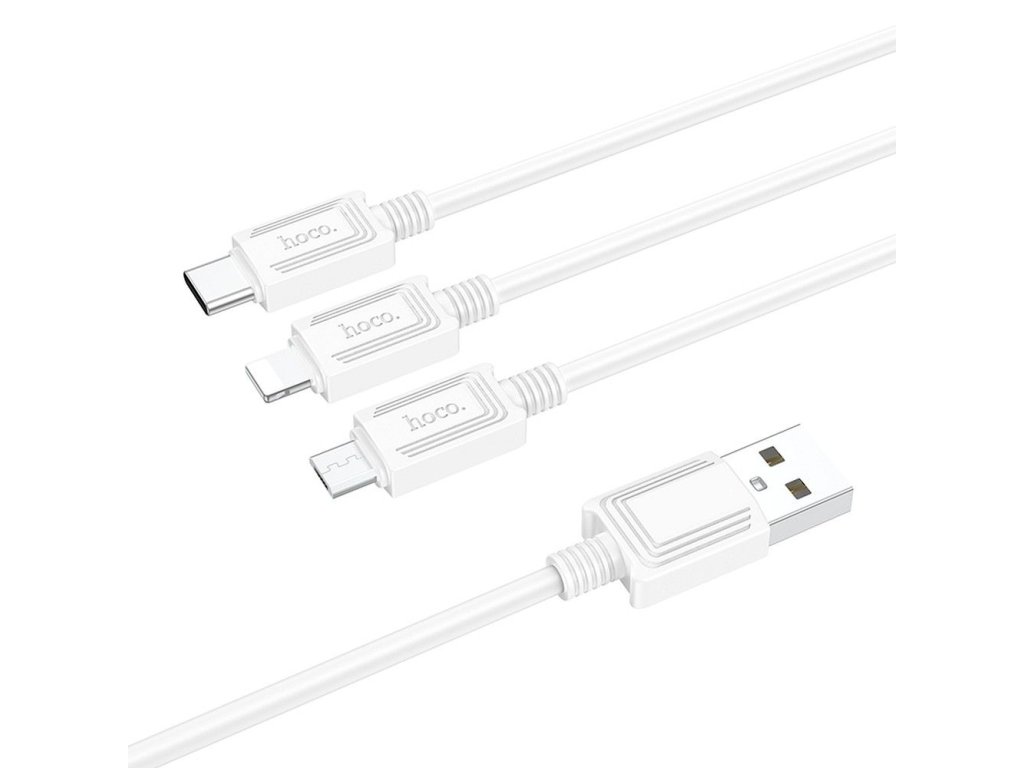 Hoco X74 USB kabel 3v1 Apple Lightning / Micro USB / USB-C 1m / 2A - bílý.