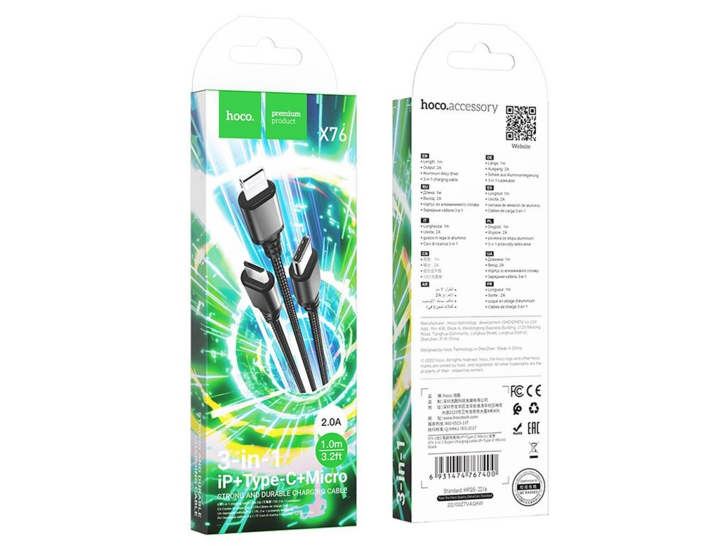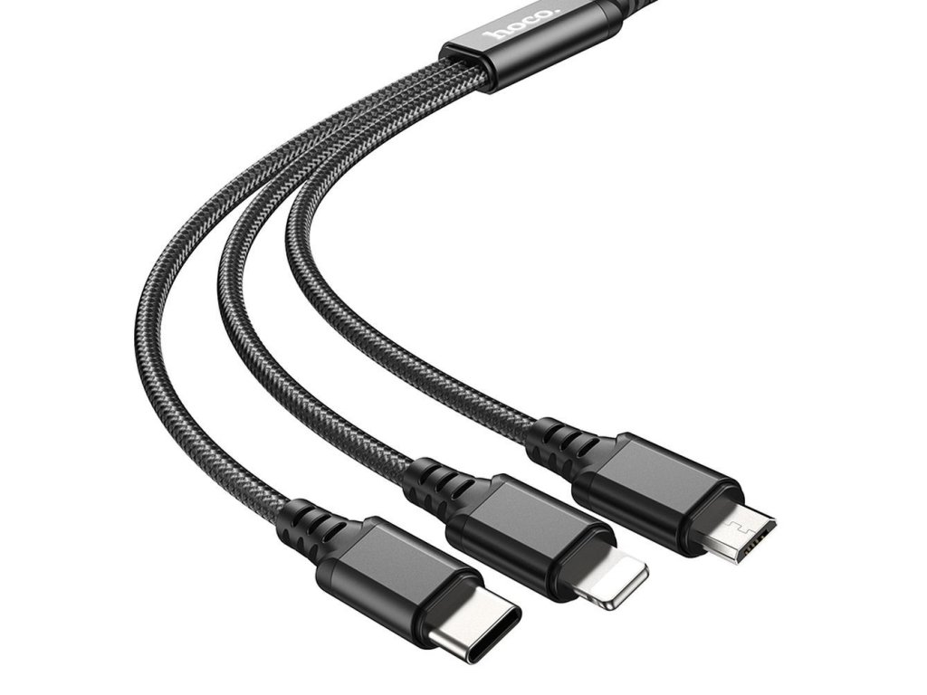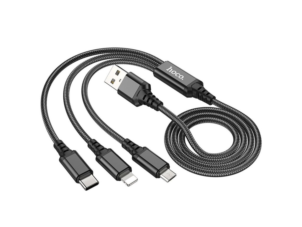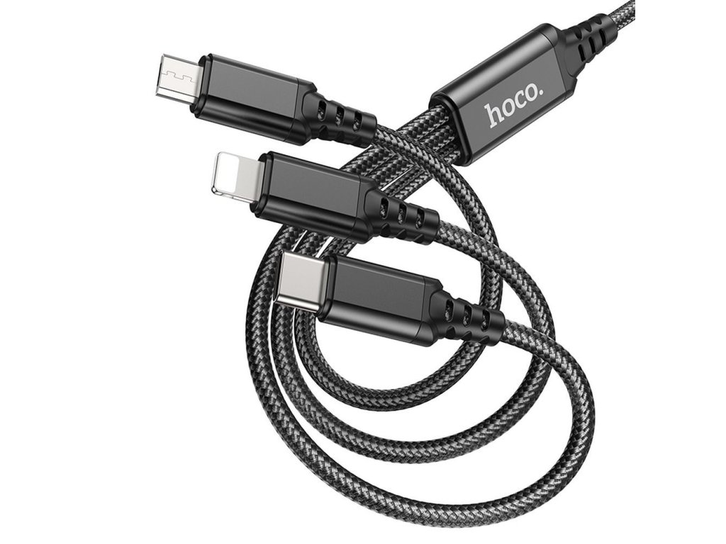 Hoco X76 USB kabel 3v1 Apple Lightning / Micro USB / USB-C 1m / 2A - černý.