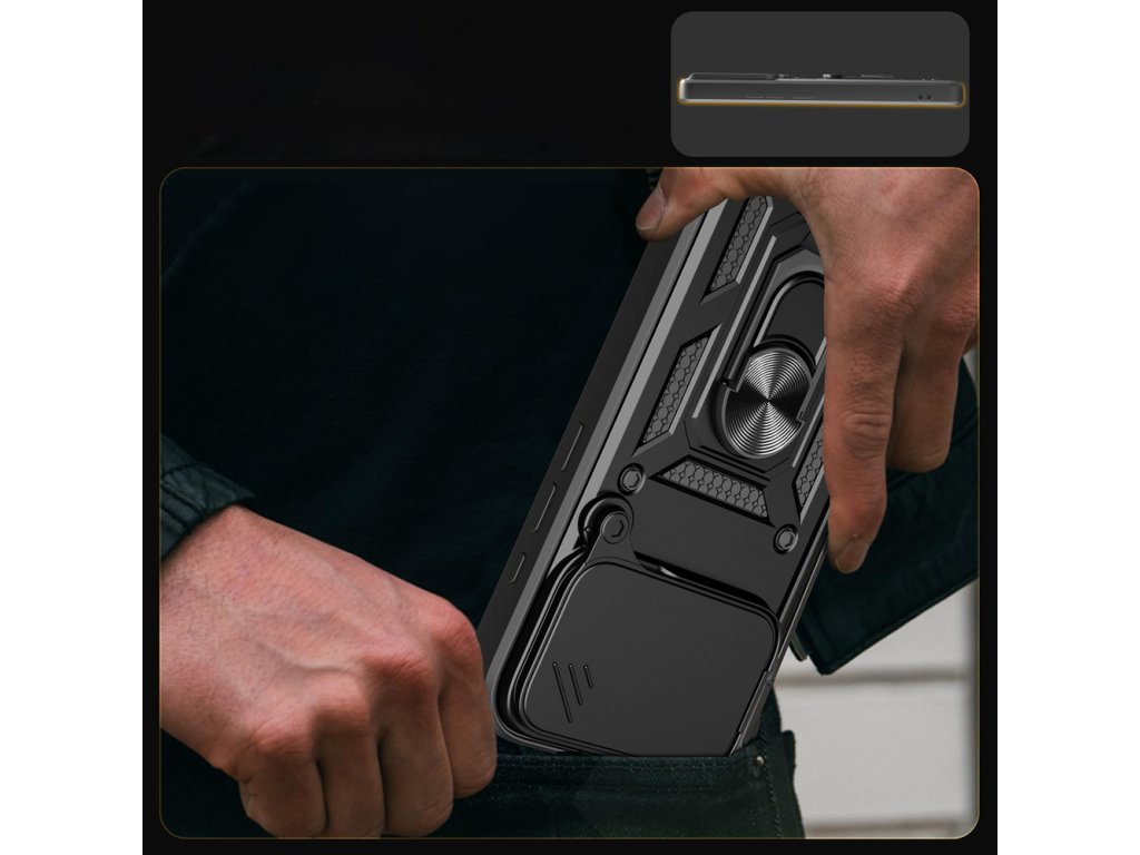 Pouzdro Hybrid Armor Camshield je vyrobeno z termoplastického a odolného materiálu. Kryt dokonale chrání telefon před poškozením pádem nebo poškrábáním, má posuvný kryt pro zadní fotoaparát, díky němu je sklo kamery chráněno.