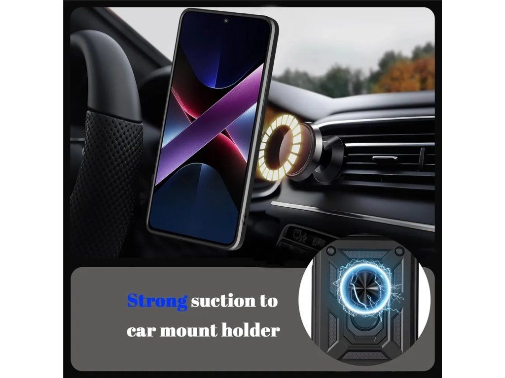 Pouzdro je vybaveno integrovaným kovovým kroužkem, který slouží jako držák pro pohodlné ovládání jednou rukou a zároveň funguje jako praktický stojánek pro sledování obsahu. Vestavěná kovová destička navíc umožňuje snadné uchycení do magnetických držáků v autě.