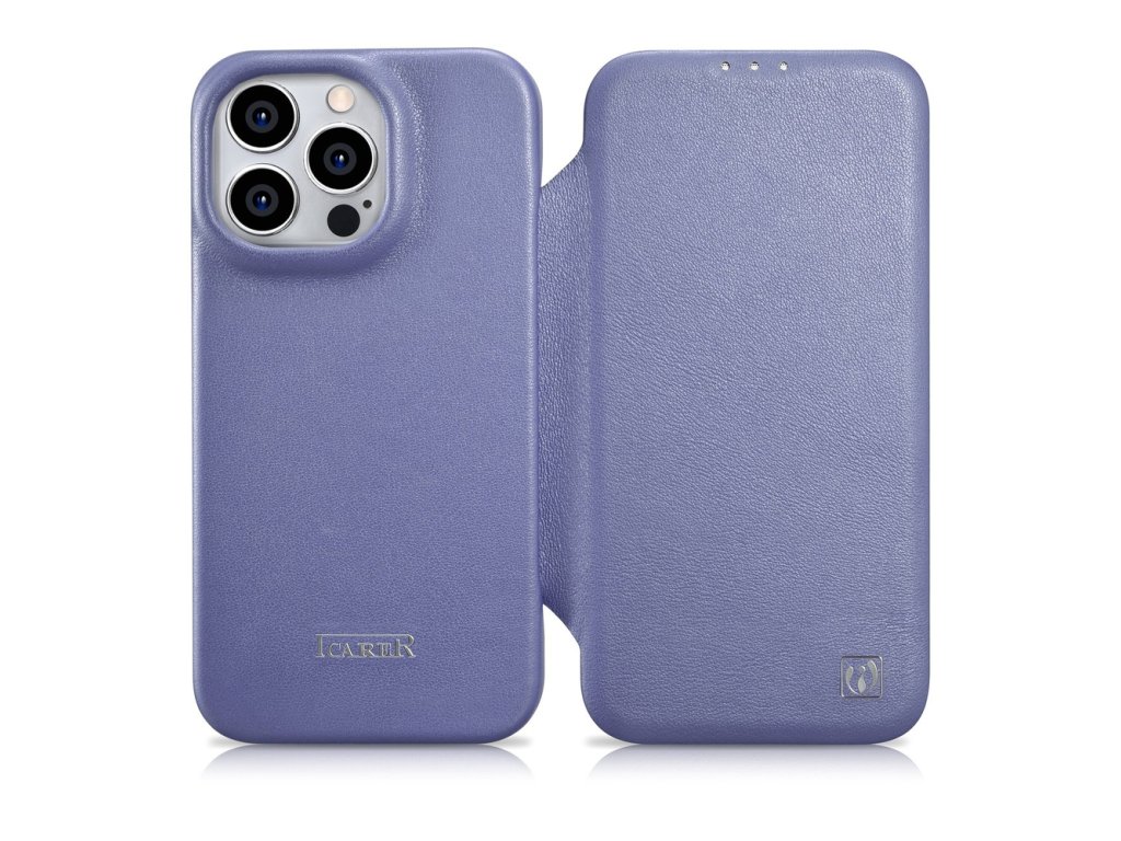 Icarer CE Premium kožené pouzdro s MagSafe pro Apple iPhone 14 PRO / fialová
