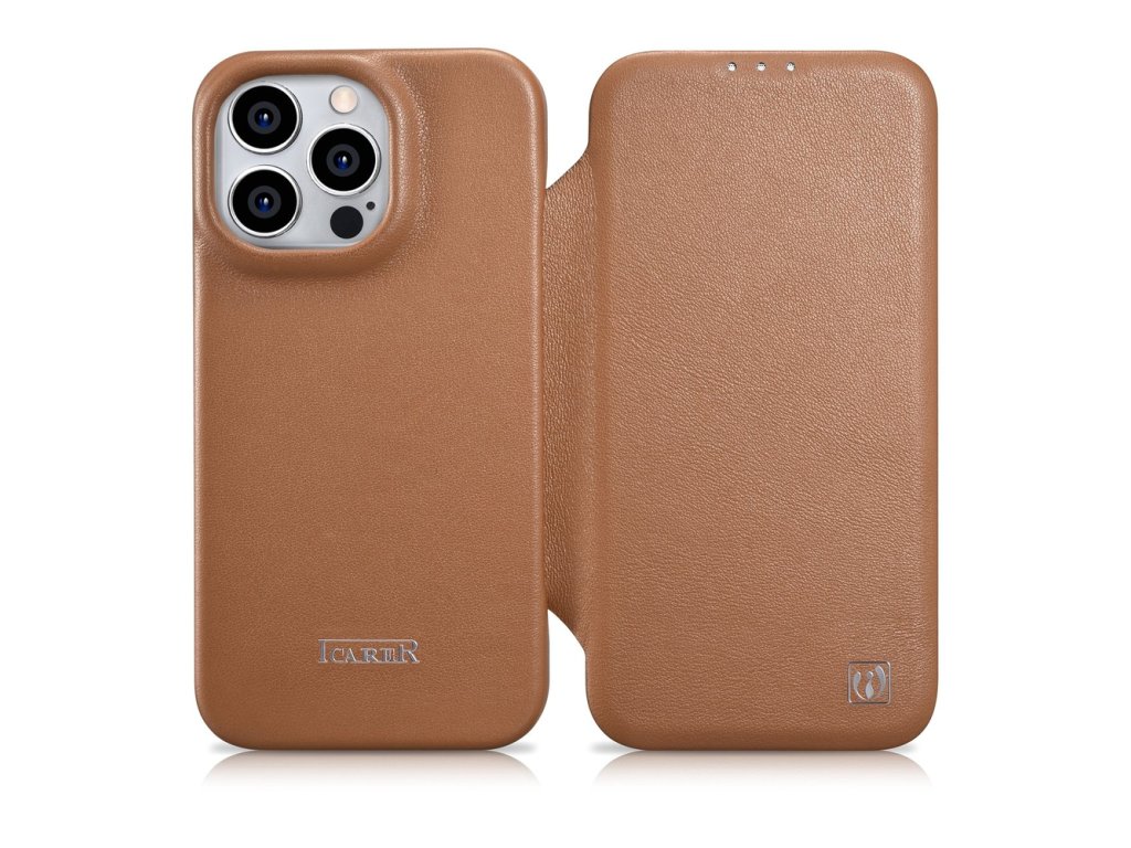 Icarer CE Premium kožené pouzdro s MagSafe pro Apple iPhone 14 PRO / hnědá