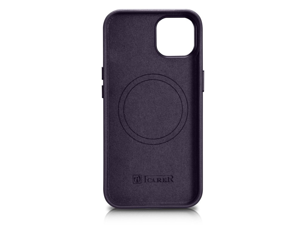Icarer kožený kryt / pouzdro s MagSafe pro Apple iPhone 14 / fialová