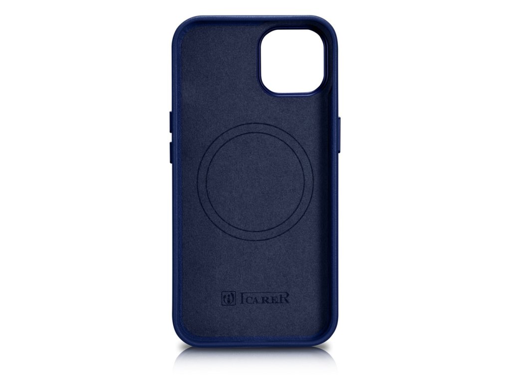 Icarer kožený kryt / pouzdro s MagSafe pro Apple iPhone 14 / modrá