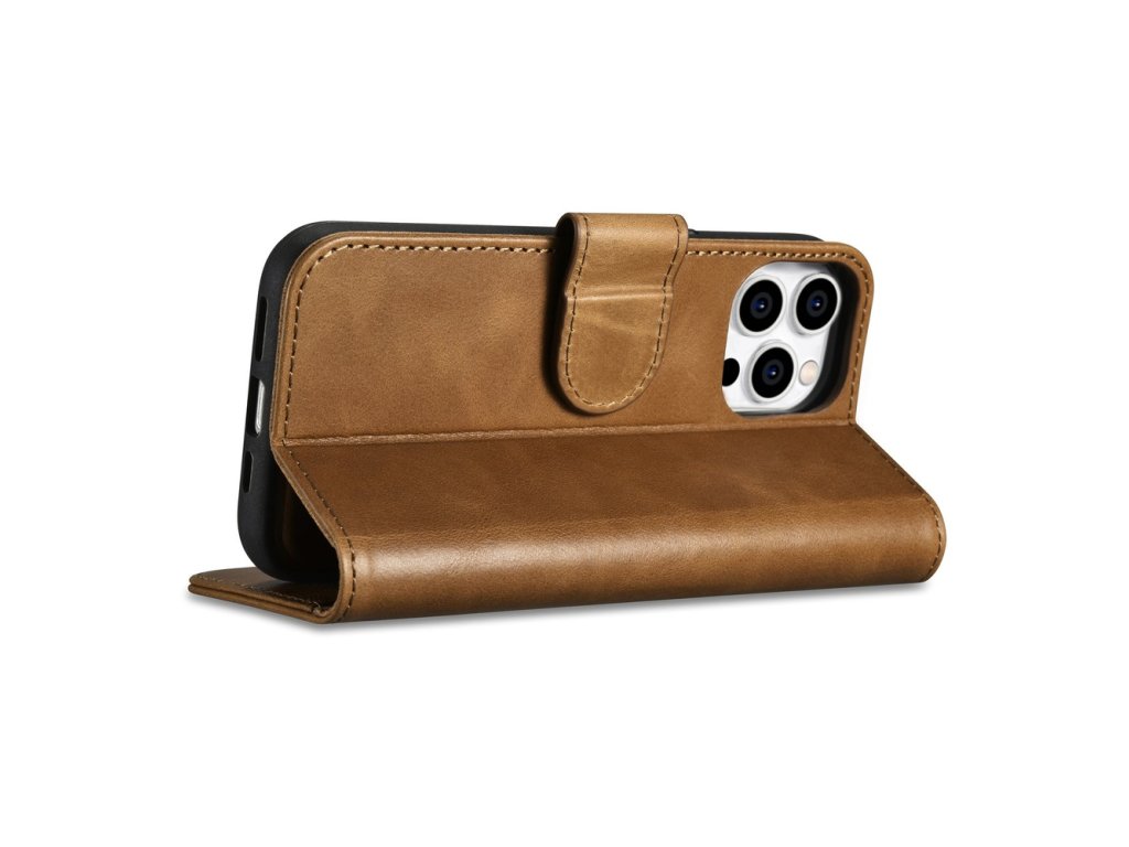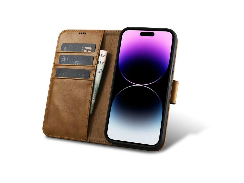 Icarer Oil Wax Wallet kožené pouzdro s 2v1 pro Apple iPhone 14 PRO MAX / světle hnědá