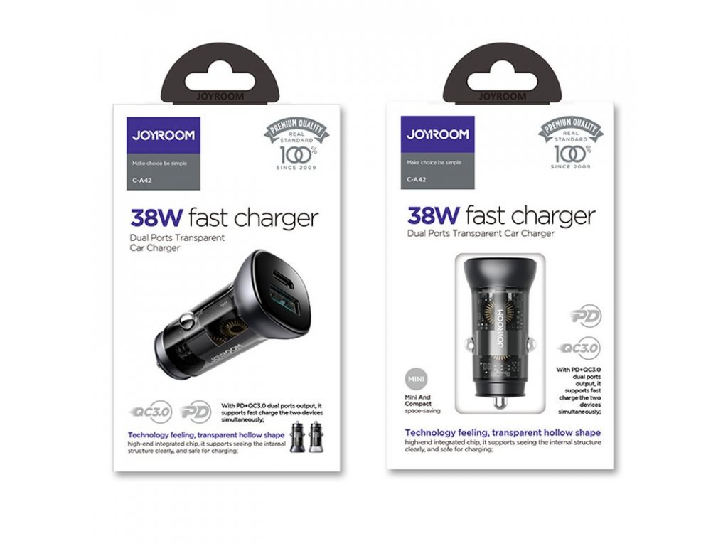 Joyroom C-A42 nabíječka do auta USB / USB-C PD / 38W / 3A / QC 3.0 / AFC / SCP - šedá.