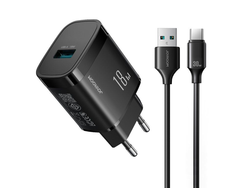 Joyroom JR-TF4 nabíječka USB-A / QC 3.0 / 18W / s kabelem USB-A / USB-C - černá.