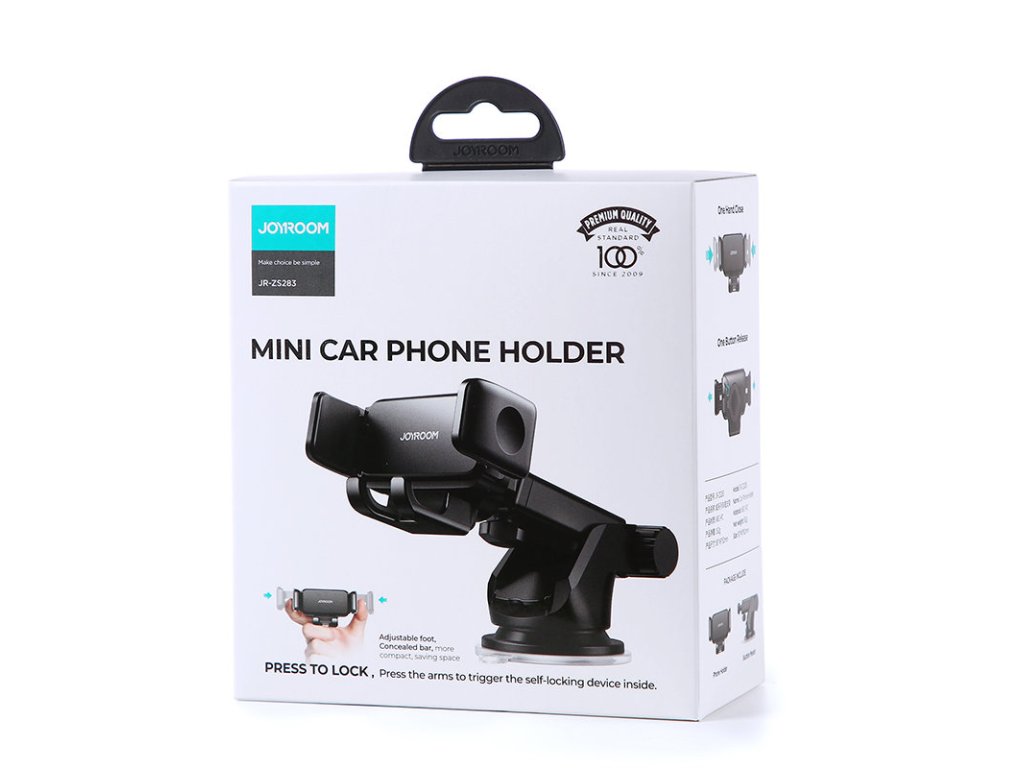 Kompaktní držák Joyroom JR-ZS283 je praktickým řešením pro bezpečné používání mobilního telefonu během jízdy. Uchycení na palubní desku nebo sklo zajišťuje snadnou dostupnost telefonu pro navigaci nebo hands-free hovory.