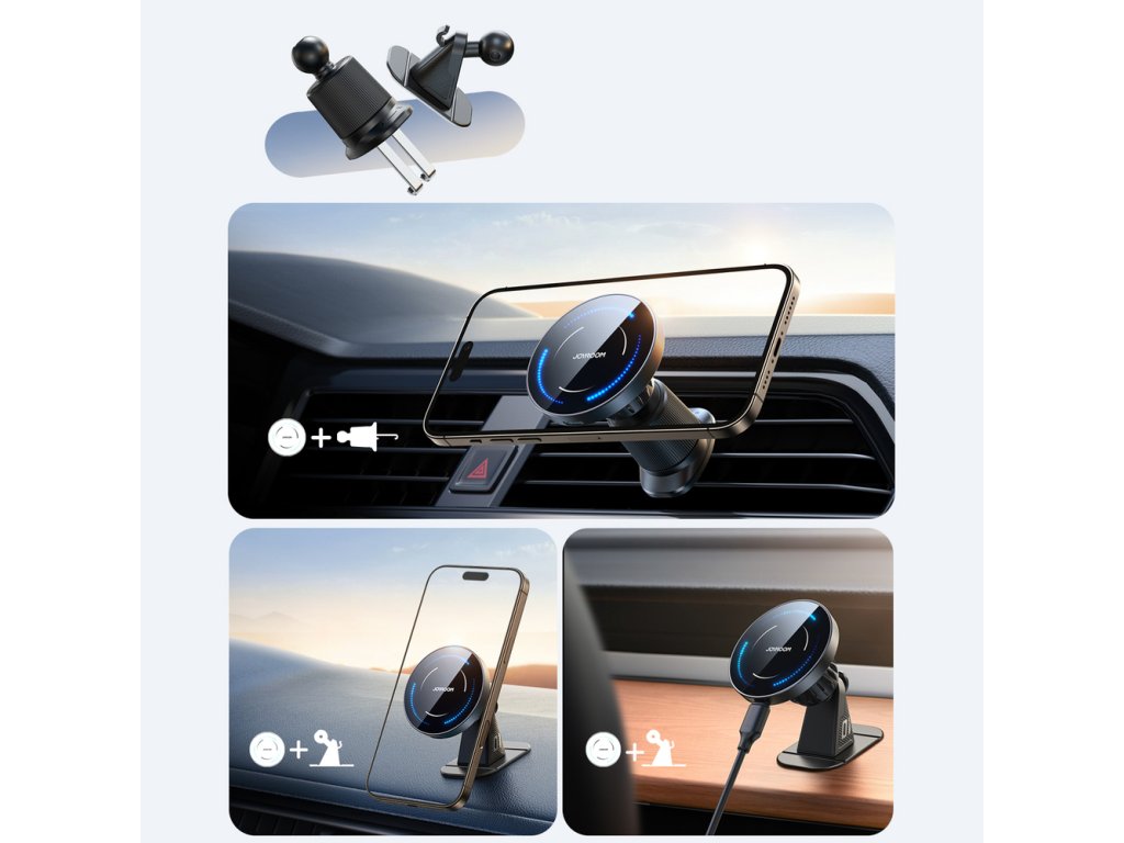 Joyroom JR-ZS502 MagSafe držák s nabíjením, na palubní desku/sklo + do mřížky ventilátoru