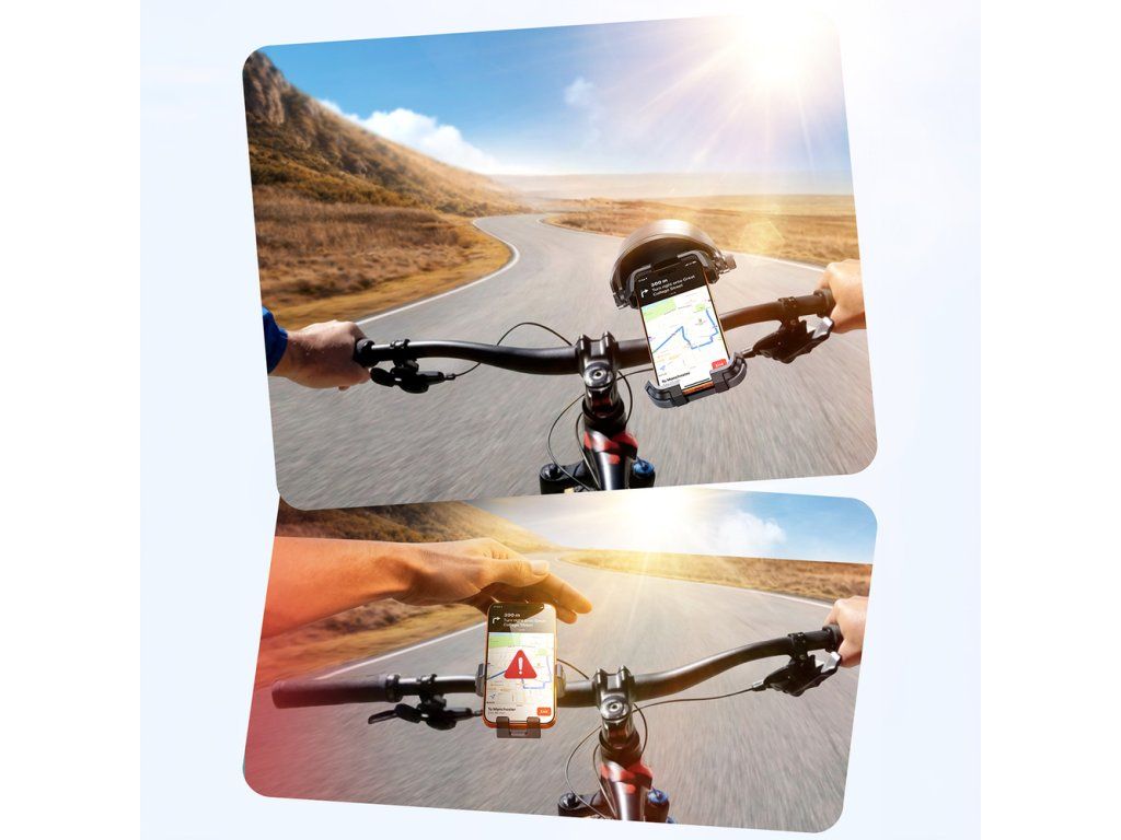 Držák je kompatibilní s většinou smartphonů o velikosti 4,7 až 7 palců a snadno se připevňuje na řídítka o průměru cca 18-35 mm. Odolná konstrukce z materiálů PC a ABS zaručuje dlouhou životnost i při častém používání.