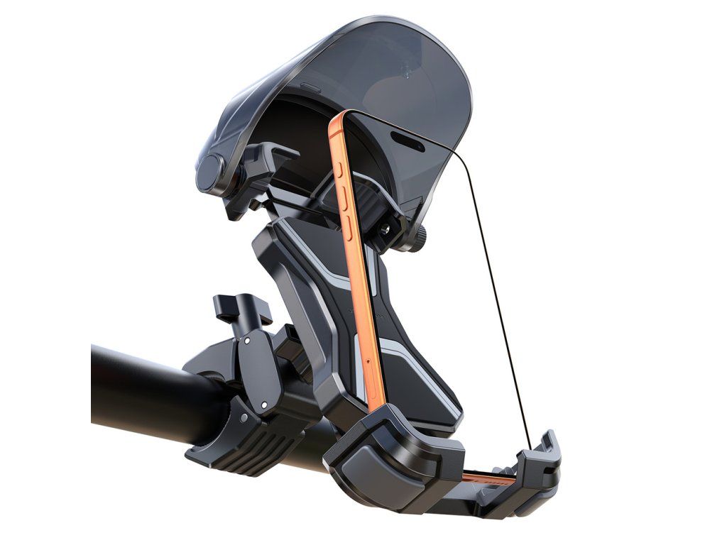 Držák je vybaven pevným uzamykacím mechanismem, který spolehlivě drží telefon na místě i při jízdě po nerovném terénu. Konstrukce navíc obsahuje prvky tlumící vibrace, čímž chrání zařízení před otřesy a zajišťuje stabilní obraz.