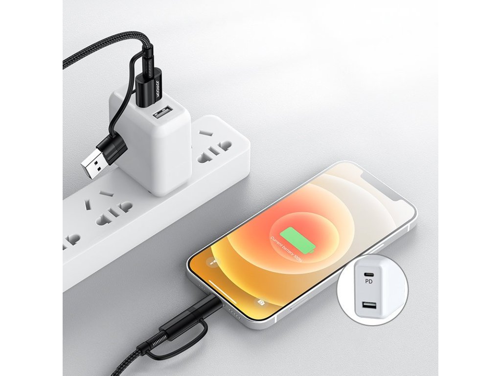 Joyroom S-1830G3 USB kabel 4v1 USB + USB-C PD / USB-C + Lightning / 1,8m / 3A / 60W černý