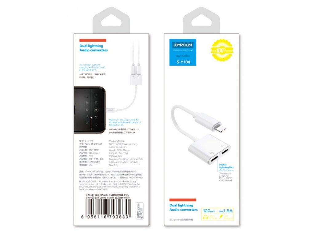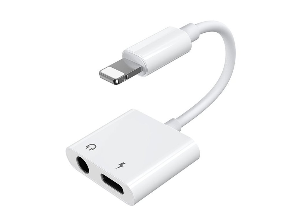 Joyroom S-Y104 adaptér Apple Lightning / 3,5mm jack + Apple Lightning / rozdvojení - bílá.