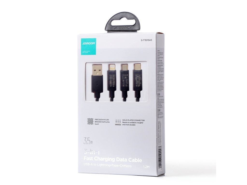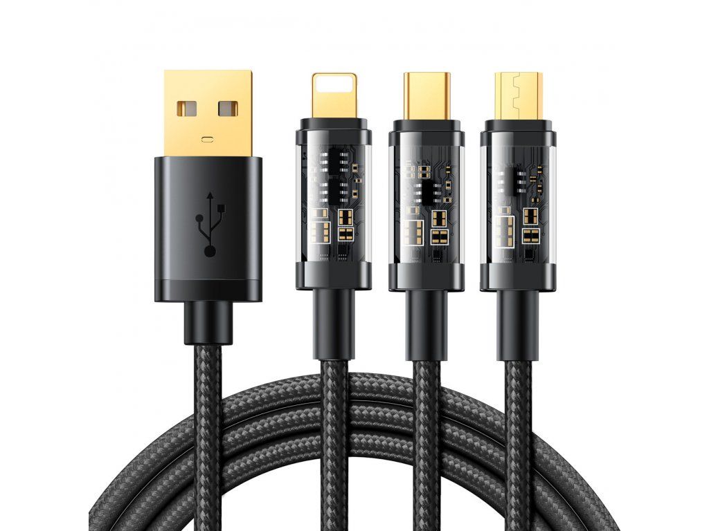 Joyroom USB kabel 3v1 Apple Lightning / Micro USB / USB-C 1,2m / 3,5A černý.
