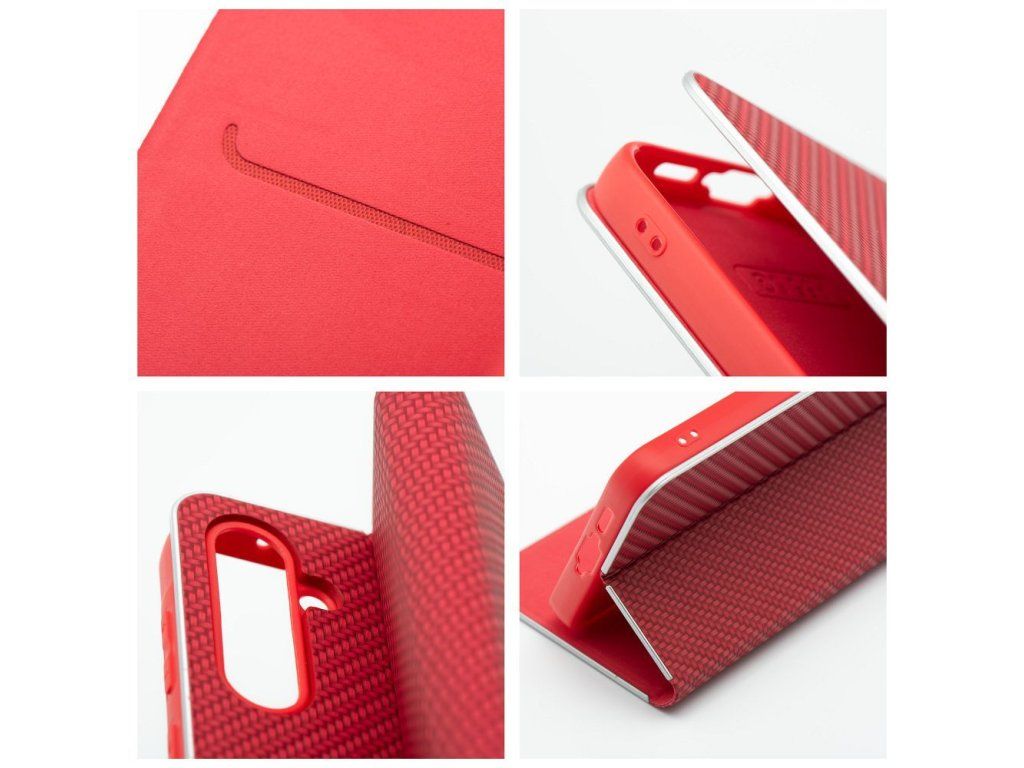 Otevírací / knížkové pouzdro Smart Luna Carbon pro mobilní telefon Samsung Galaxy A15 4G / A15 5G - červená.