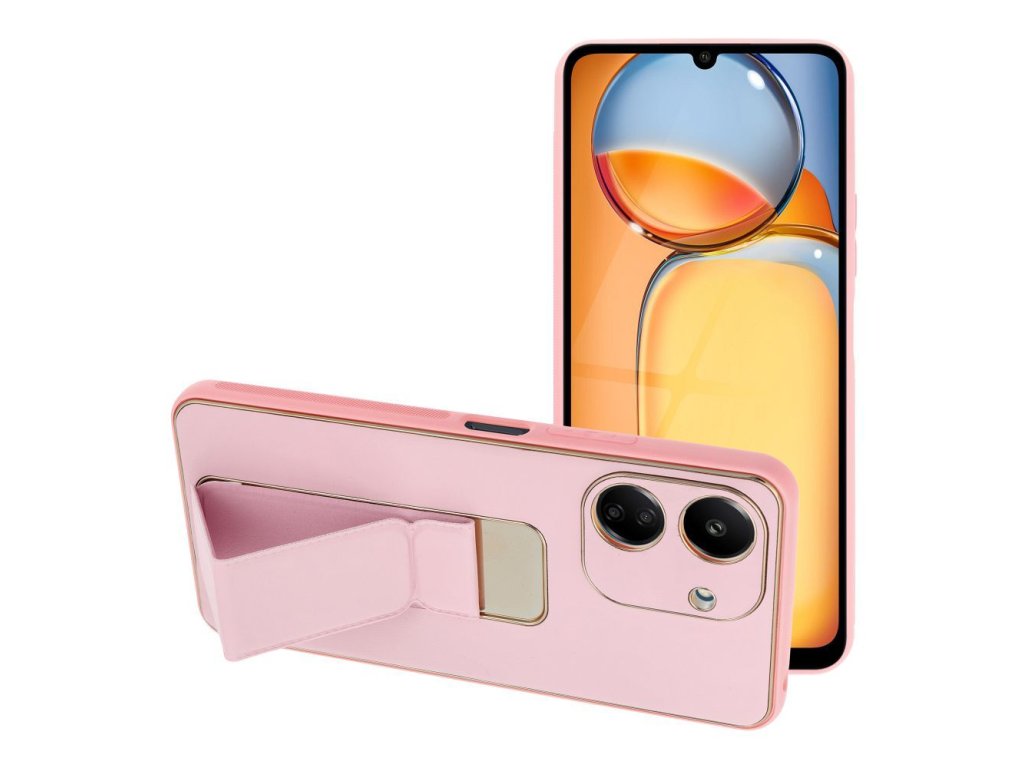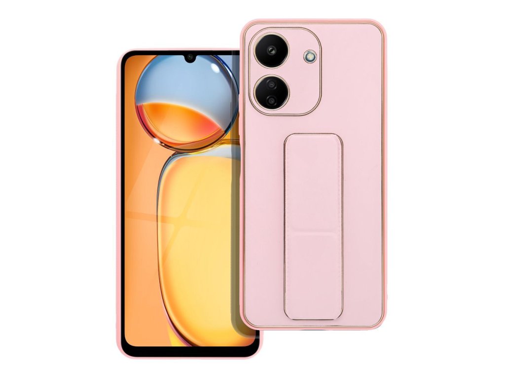 Leather Case Kickstand ochranné pouzdro / kryt 3v1 pro mobilní telefon Xiaomi RedMi 13C - růžové.