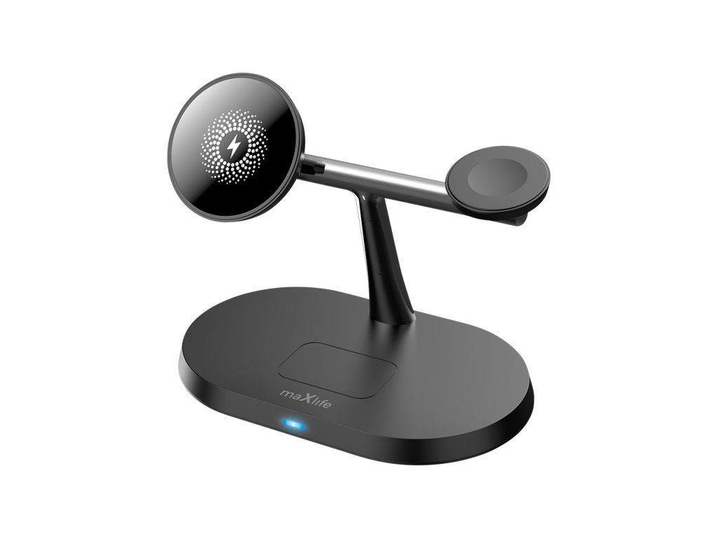 MaxLife MXWC-03 MagSafe bezdrátová stolní nabíječka 3v1 / telefon, sluchátka, hodinky - černá.