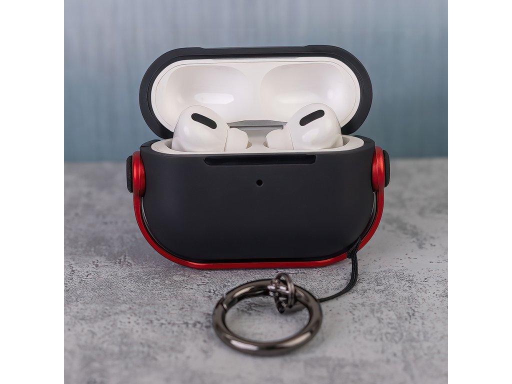 OEM pouzdro pro Apple AirPods PRO / AirPods PRO 2 / s poutkem a karabinou - černá / červená.