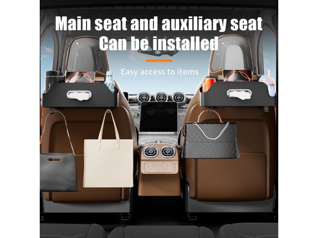Díky své konstrukci lze organizér snadno umístit na sedadlo a jeho kompaktní rozměry ve složeném stavu usnadňují jeho skladování.