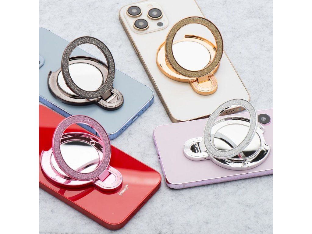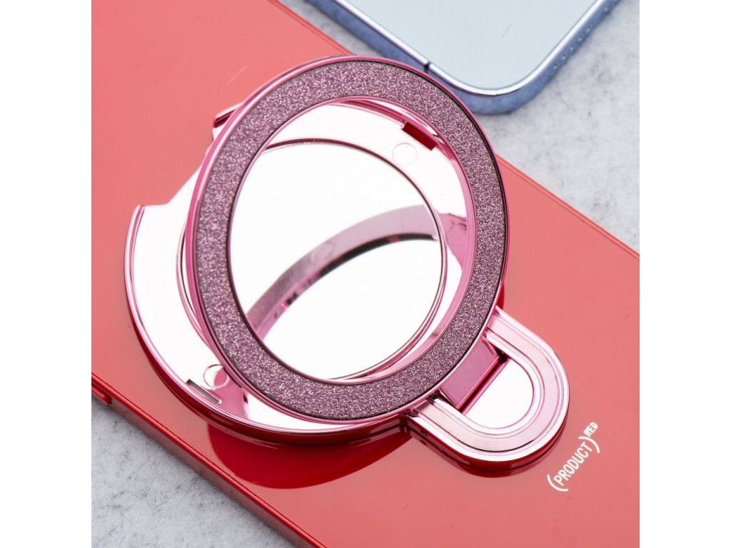 PTK Briliant univerzální držák, stojánek pro snadnější držení telefonu, se zrcátkem růžová