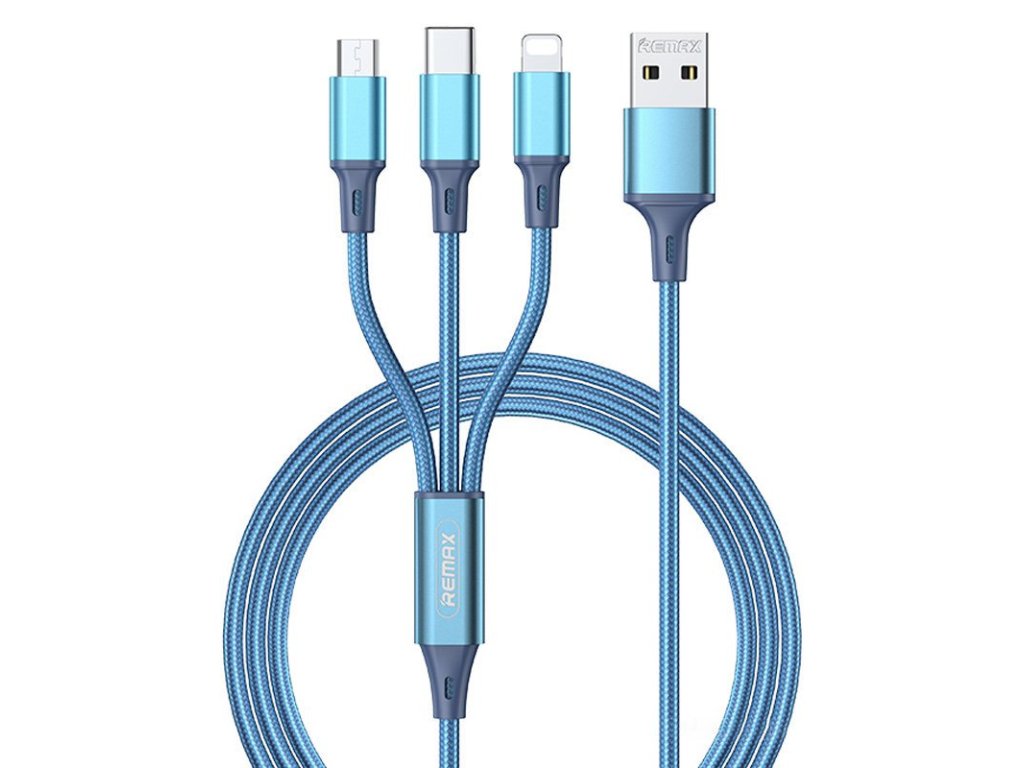 REMAX RC-189th USB kabel 3v1 Micro USB / USB-C / Lightning 3,1A / 1,2m - modrý
