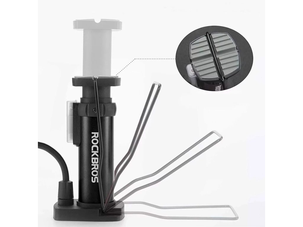 Představujeme pumpu na kolo Rockbros 42610002001 - nenahraditelný nástroj, který bude fungovat v každé situaci. Má dvojitou hlavici se zabudovaným zámkem a je kompatibilní s ventilky Presta a Schrader. Vestavěný manometr umožňuje přesnou kontrolu tlaku. Sklopná opěrka nohou a pryžová podložka zvyšují komfort používání a zajišťují stabilitu při používání.