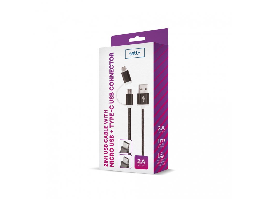 Setty USB kabel 2v1 Micro USB + USB-C - černý