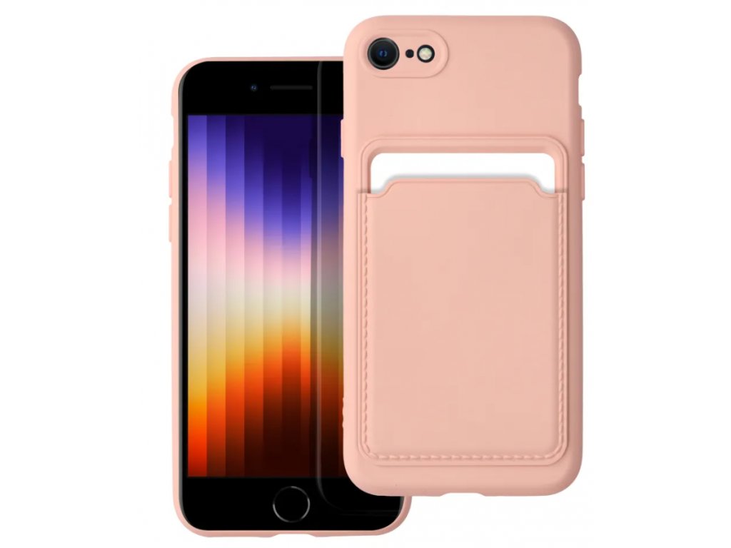 Silicone CARD case ochranné pouzdro / kryt s přihrádkou na karty pro mobilní telefony Apple iPhone 7 / 8 (4,7") / SE 20/22 - růžové.