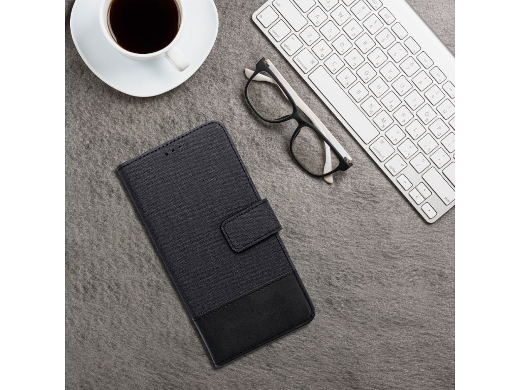 Perfektně padnoucí pružná kolébka pevně drží telefon a magnetická spona jej chrání proti náhodnému otevření. Pouzdro je vyrobeno z EKO kůže a materiálu připomínajícího JEANS, má všechny potřebné výřezy pro fotoaparát a porty.