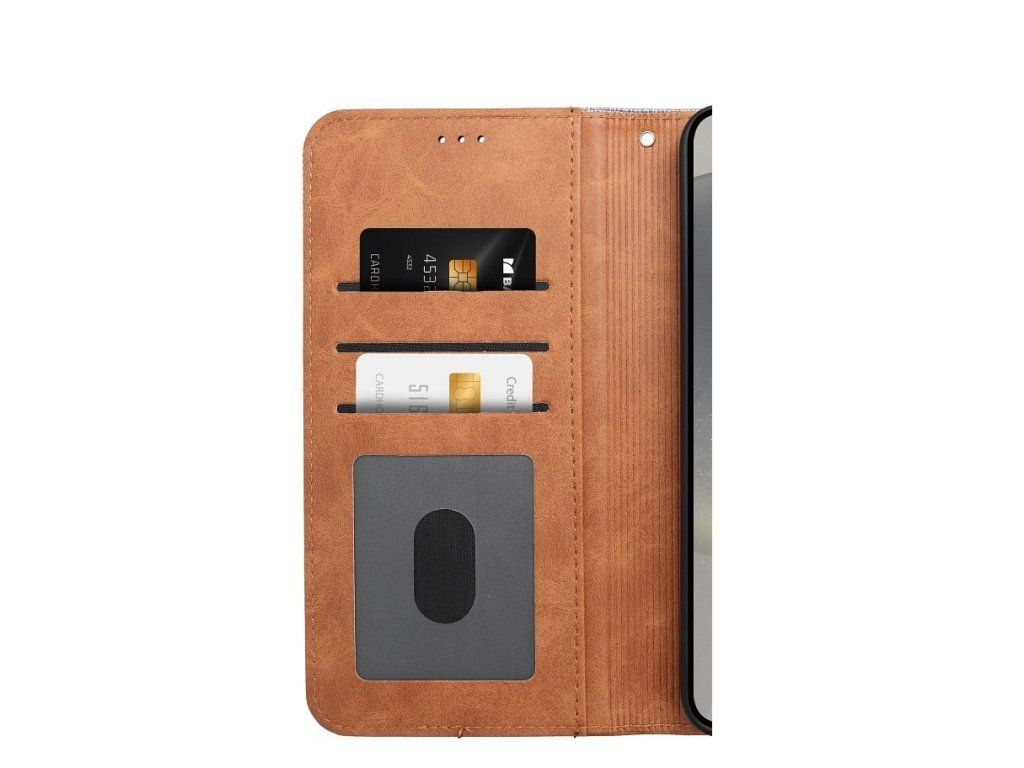Vnitřní strana klopny nabízí praktické přihrádky na platební karty, doklady nebo hotovost, takže pouzdro může částečně nahradit peněženku. Magnetické zavírání zajišťuje bezpečné uzavření a chrání telefon před nechtěným otevřením.