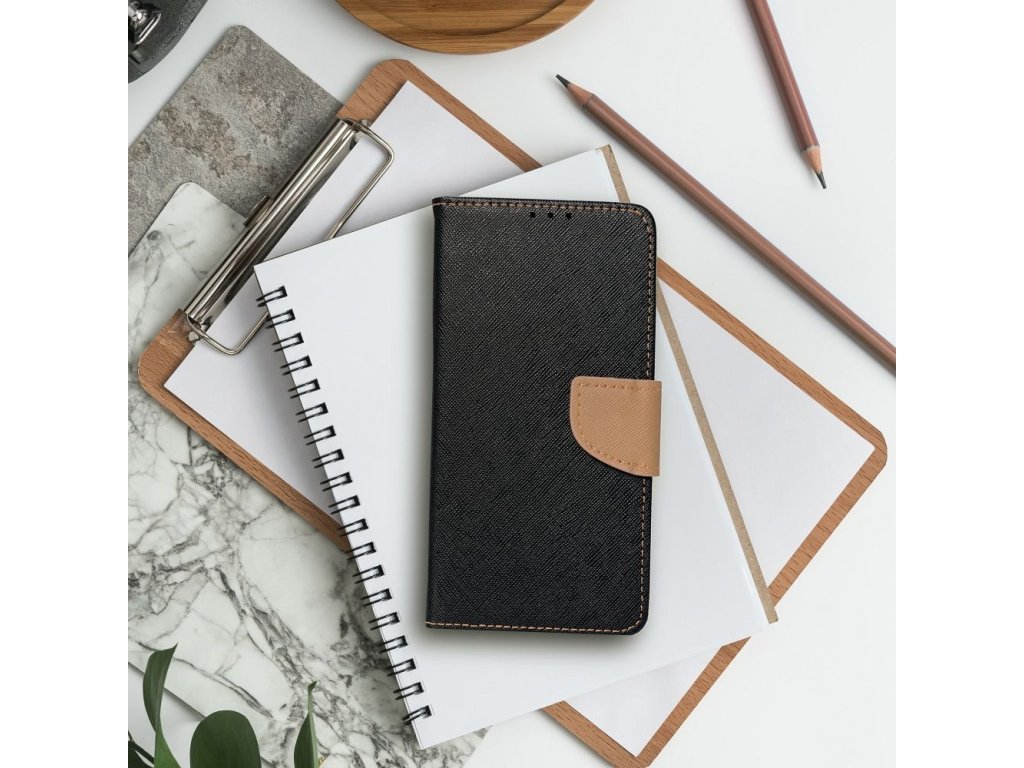 Smart FANCY otevírací / knížkové pouzdro pro mobilní telefon Apple iPhone 16 - černá / zlatá.