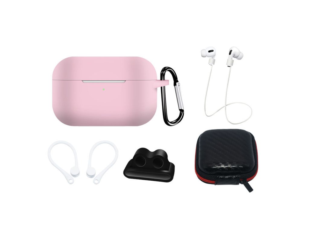 Soft Silicone set pouzder a příslušenství pro Apple AirPods PRO 1/2 - růžová.