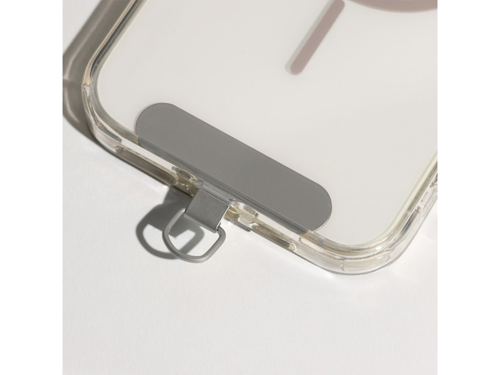 Univerzální kovová vložka pod kryt telefonu pro uchycení poutka / šnůrky / popruhu stříbrná.