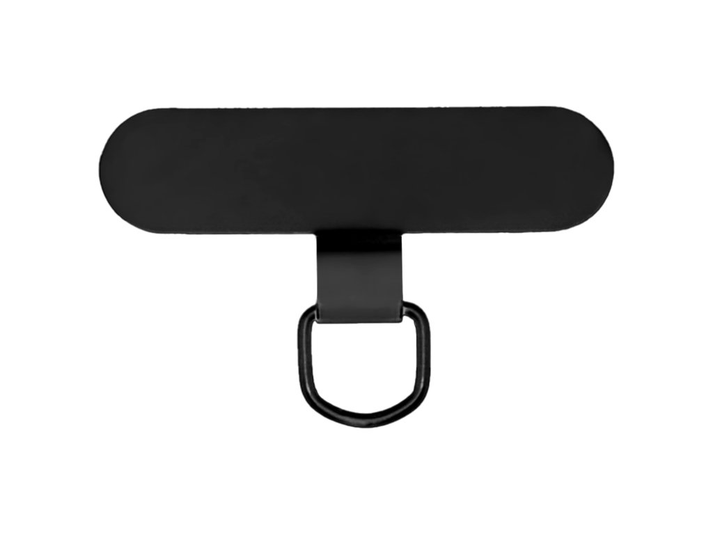 Univerzální kovová vložka pod kryt telefonu pro uchycení poutka / šnůrky / popruhu černá.
