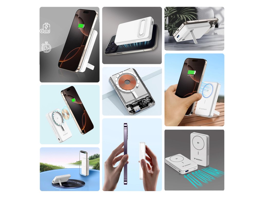 Vestavěný stojánek umožňuje pohodlné používání telefonu během nabíjení a jeho kompaktní design se vejde do každé kapsy. Ochrana proti přebití a přehřátí zaručuje bezpečné a efektivní nabíjení vašich zařízení.