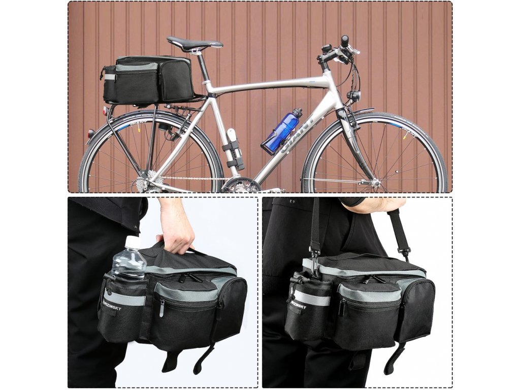 Tato multifunkční brašna má více kapes, držák na láhev a kapacitu 6 L. Obsahuje také, reflexní pásy, které zvyšují bezpečnost noční cyklistiky. Perfektní výbava pro každého cyklistu.