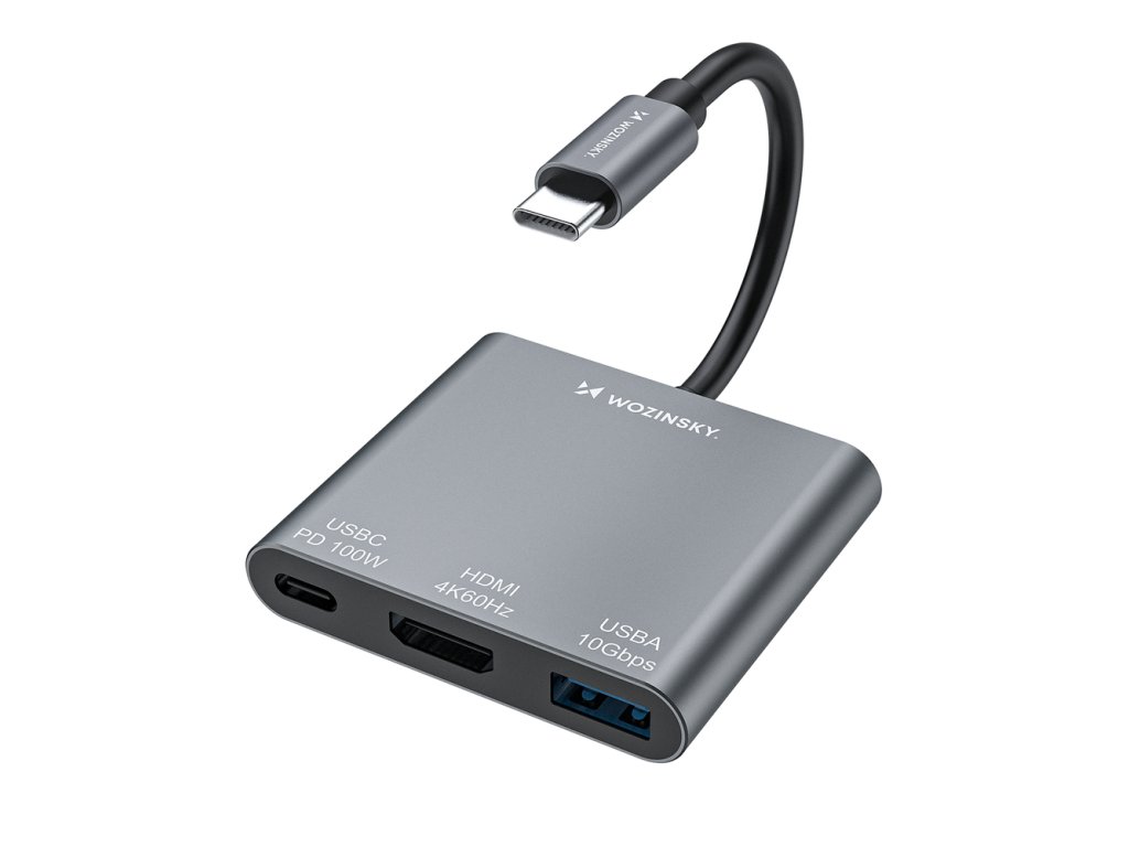 Wozinsky USB-C adaptér USB-C 100W / HDMI 4K 60Hz / USB-A 10Gbps