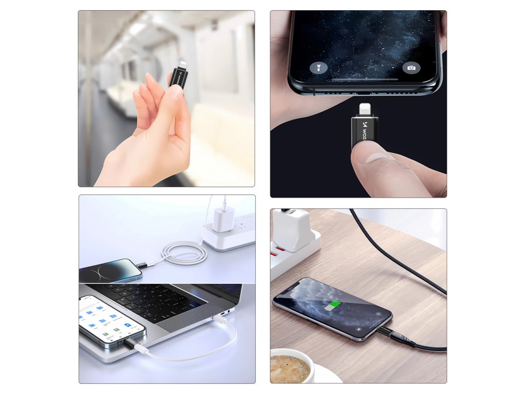 Adaptér Wozinsky WALC-01 umožňuje rychlé a pohodlné nabíjení a synchronizaci zařízení Apple pomocí kabelu USB-C. Jeho minimalistický design s hliníkovým povrchem zajišťuje odolnost a lepší odvod tepla. Zařízení je plug-and-play, bez nutnosti instalace ovladačů. Podporuje rychlé nabíjení vybraných modelů iPhonu a iPadu a přenos dat, což z něj činí praktické a všestranné příslušenství pro každodenní použití.