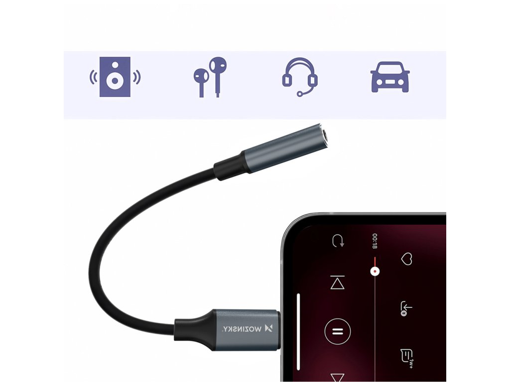 Adaptér Wozinsky WALJ-01 je praktickým řešením pro uživatele zařízení Apple, kteří nemají 3,5mm mini jack. Umožňuje připojení sluchátek, mikrofonů nebo reproduktorů a zajišťuje stabilní přenos zvuku. Je vyroben z hliníku a vyztužených materiálů, je odolný vůči poškození a ohýbání a jeho lehký a kompaktní design umožňuje snadné uložení do kapsy nebo tašky. Díky bezkyslíkatému měděnému drátu a TPE povlaku adaptér zaručuje čistý zvuk v HiFi kvalitě. Je kompatibilní s mnoha modely iPhonu a iPadu a umožňuje pohodlně poslouchat hudbu a telefonovat.