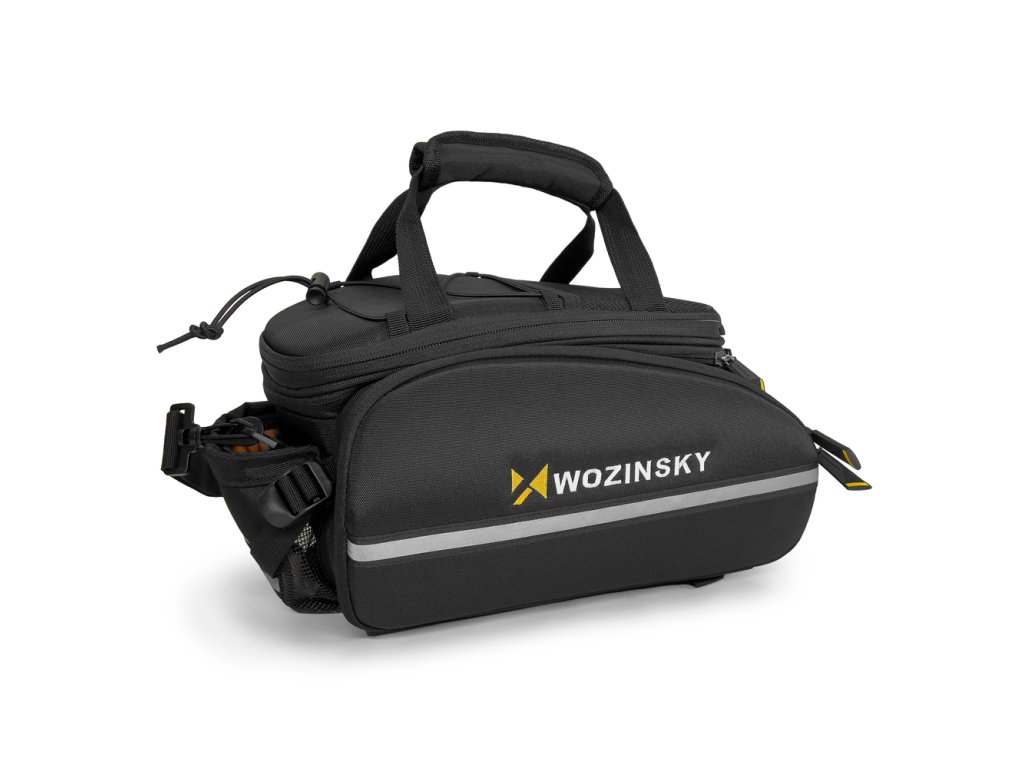 Brašna na zadní nosič jízdního kola od značky Wozinsky, model WBB19BK je jednou z nejfunkčnějších brašen v naší nabídce. Může se pochlubit mnoha praktickými funkcemi: velkými, výsuvnými bočními brašnami, pláštěnkou, praktickými vnitřními přihrádkami a ramenním popruhem. V závislosti na vašich potřebách můžete rychle a pohodlně rozšířit její využitelný prostor. Tato brašna je skvělý doplněk pro krátké i dlouhé cesty, snadno instaluje a demontuje, takže si ji můžete snadno kdykoliv během přerušení jízdy vzít s sebou.