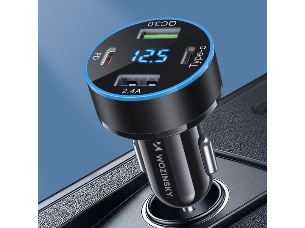 Wozinsky WDCCB nabíječka do auta 2x USB-A + 2x USB-C / 50W / LED displej - černá.