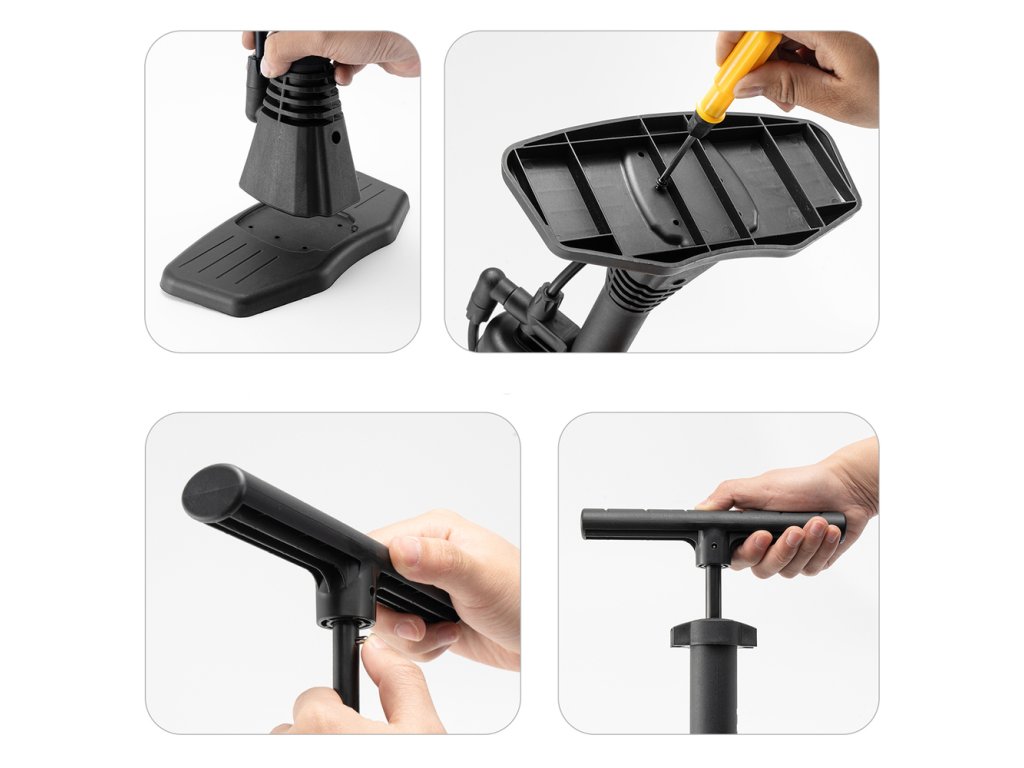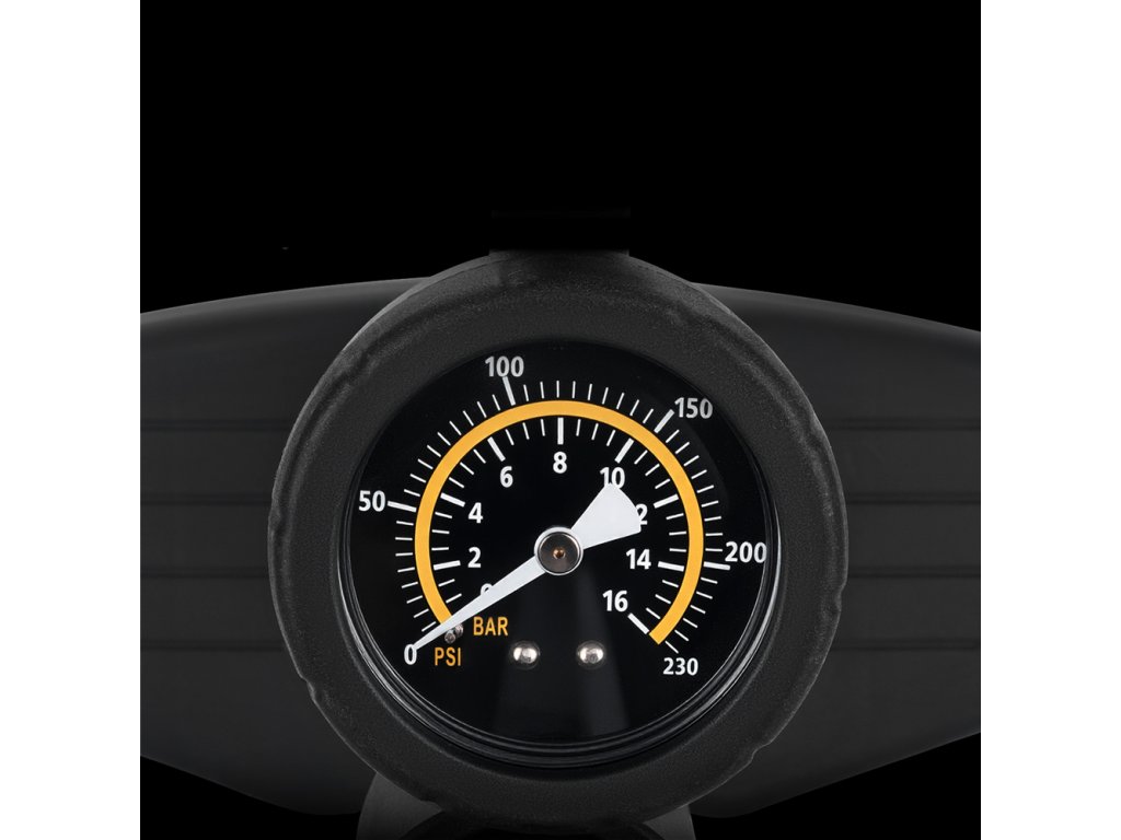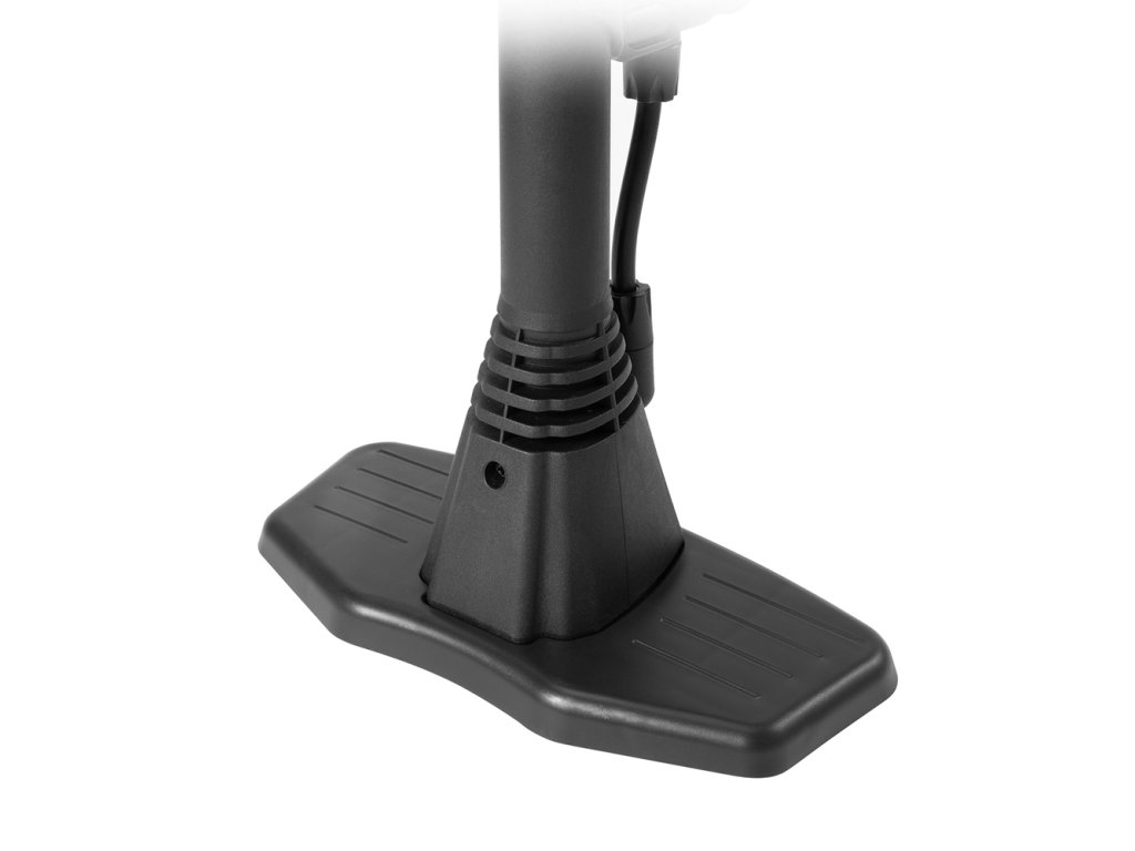 Široká a stabilní základna zajišťuje pevný došlap a bezpečné používání během huštění. Pumpa podporuje ventilky Presta i Schrader, takže je kompatibilní s většinou jízdních kol. Maximální tlak až 11 bar (160 psi) umožňuje rychlé a efektivní nahuštění silničních, horských i městských kol.