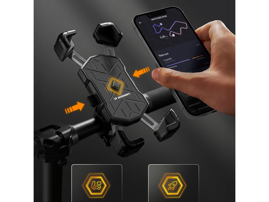 Wozinsky WUD-01B je kompaktní a praktický držák telefonu na kolo, který zajišťuje stabilní a bezpečné uchycení smartphonu i při jízdě po nerovném povrchu. Montáž na řídítka umožňuje mít telefon neustále na očích, což je ideální při používání navigace, sportovních aplikací nebo sledování jízdních údajů během jízdy.