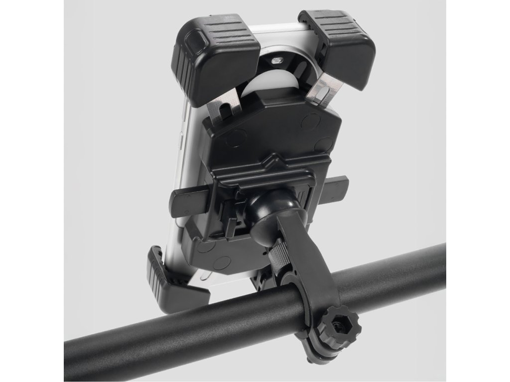 Silikonové podložky v čelistech chrání telefon před poškrábáním a zároveň tlumí vibrace, což zajišťuje pevné a stabilní držení i při jízdě v terénu. Díky široké kompatibilitě je držák vhodný nejen na kolo, ale také na koloběžku, motocykl nebo kočárek.