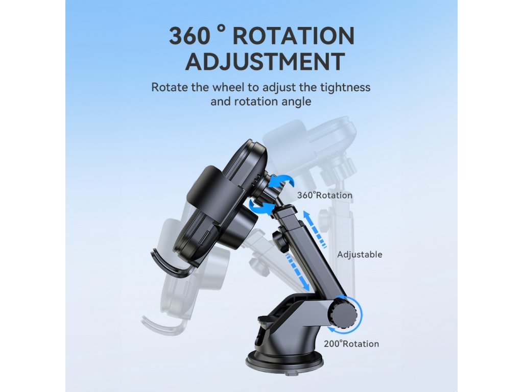 Díky vestavěné 15W indukční nabíječce umožňuje držák do auta Wozinsky WUMID rychlé nabití vloženého smartphonu. Ergonomický design umožňuje snadné nastavení délky ramene držáku, což zaručuje perfektní uchycení v jakémkoli vozidle. Silná přísavka zajišťuje stabilitu a bezpečnost zařízení i při dynamické jízdě. Inteligentní čip pro sledování teploty navíc chrání před přehřátím a zajišťuje tak bezpečnost telefonu i nabíječky.
