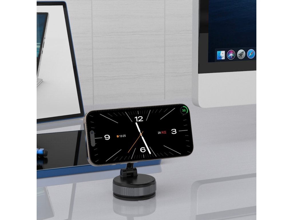 Wozinsky WUSM-01 přísavný držák se zámkem na palubní desku / na zeď / na stůl / magnetický / MagSafe - černý.