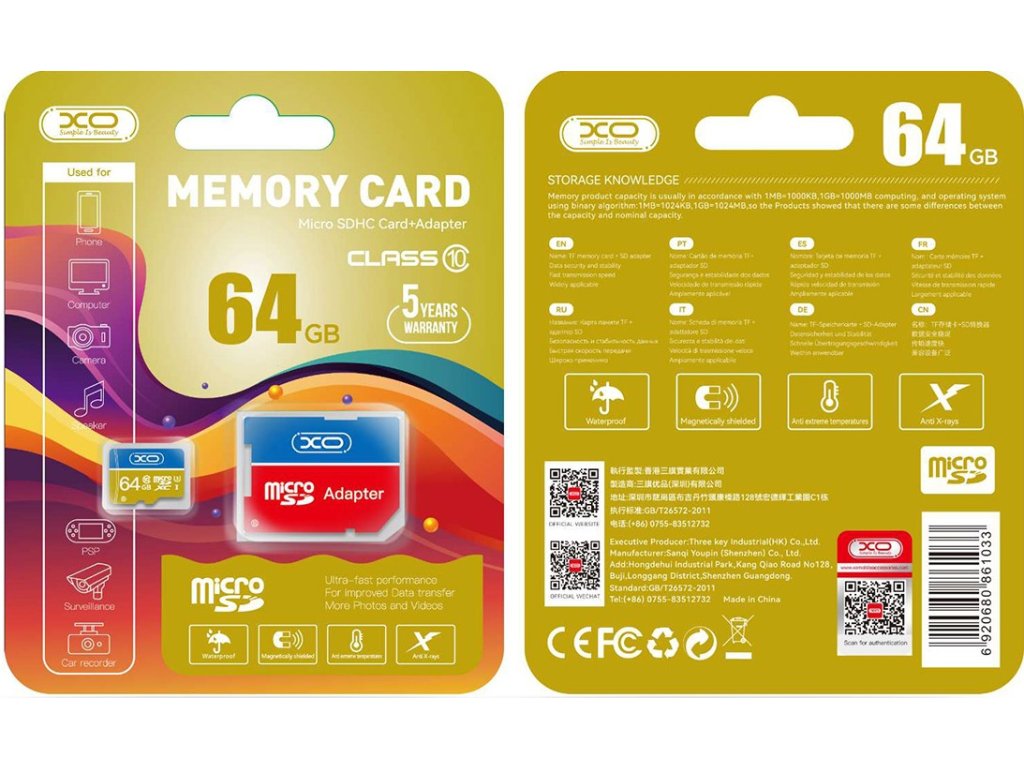 Paměťová karta XO Micro SDHC 64GB / class 10.