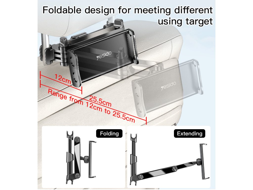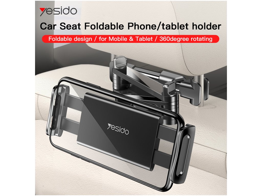 Yesido C117 držák do auta s výklopným ramenem / na opěrku hlavy telefon / tablet - černá.