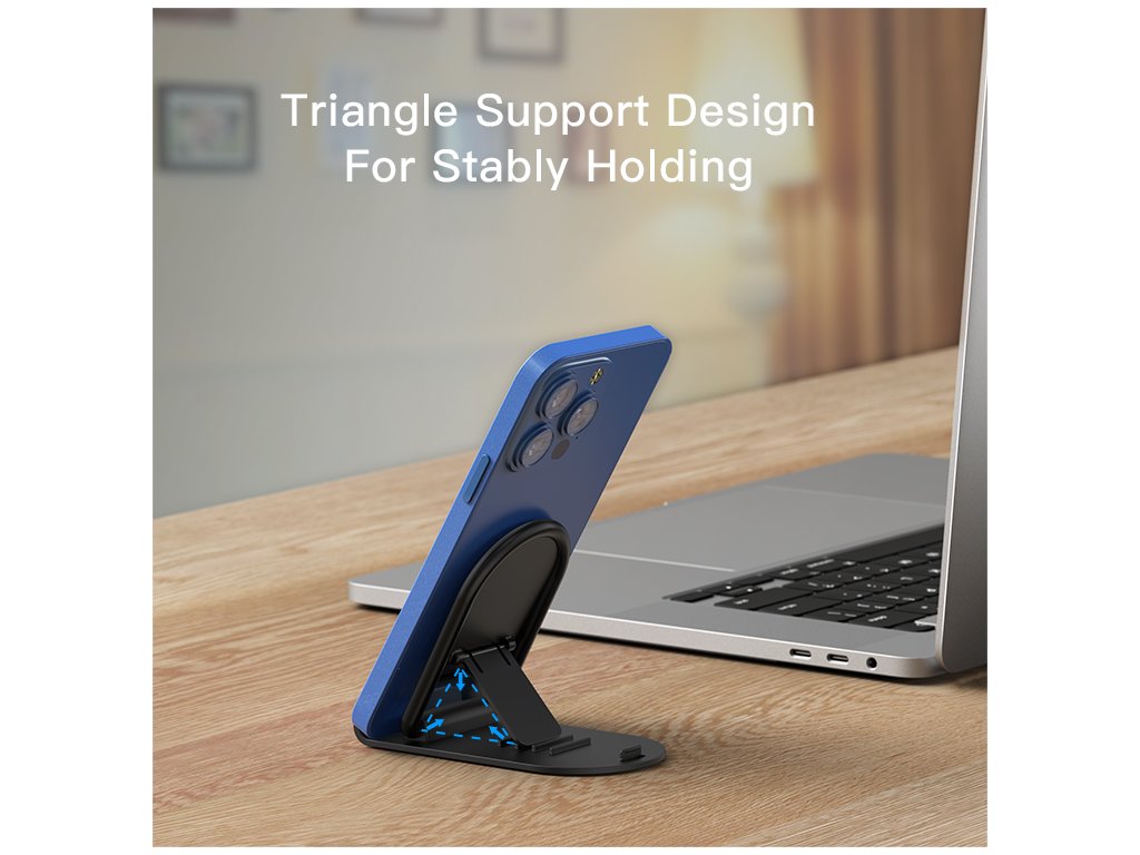 Díky pěti opěrným bodům lze stojan nastavit do požadované polohy tak, aby telefon zůstal bezpečně a stabilně uložen. To umožňuje pohodlné sledování obsahu nebo práci s telefonem v různých situacích.